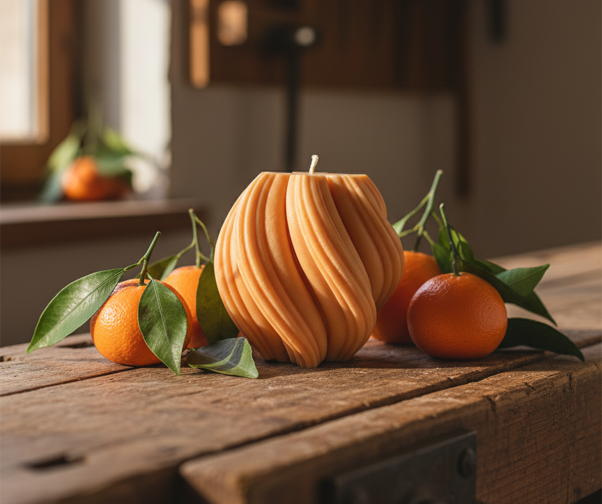 Notre plus grosse bougie torsadée soit 610g et 11cm de pur parfum clémentine, celui qui donne faim.